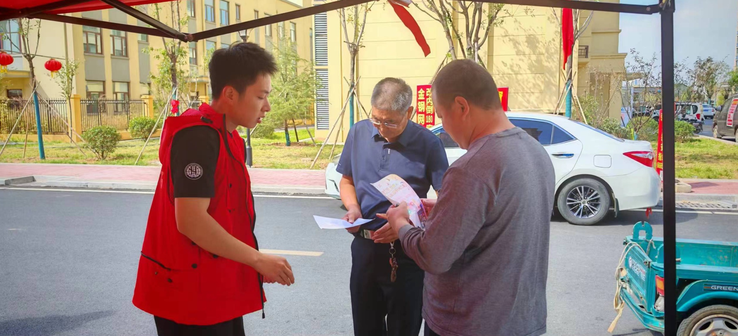 日照莒縣分公司后勤營銷小組與店子集工作站在店子集街道棚改小區(qū)山水文苑做地推走訪宣傳,協(xié)調(diào)回遷戶遷移安裝,推廣惠民套餐。圖中左一為工程技術(shù)部林皓楠在地推現(xiàn)場發(fā)放宣傳單頁介紹公司業(yè)務(wù)。